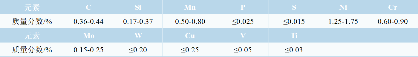 40CrNiMoA是在优质碳素结构钢的基础上,适当地加入一种或数种合金元素(总含量不超过5%)而制成的钢种,其中 Mo 能细化晶粒,提高回火抗力。