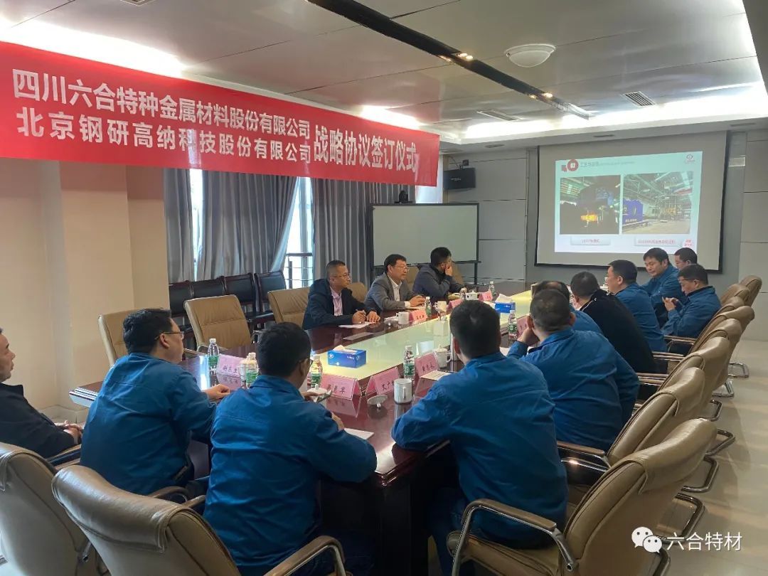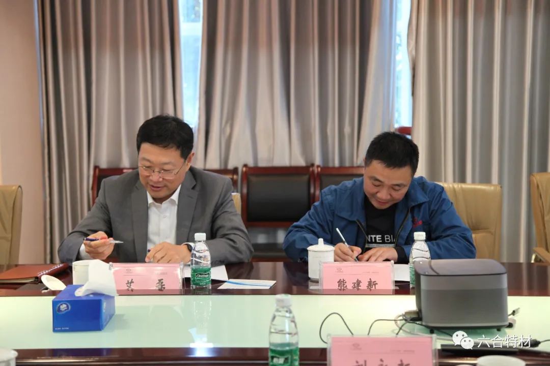 协议签署前,双方进行了会议座谈。中国钢研集团董事会秘书、钢研高纳董事长、党委书记艾磊,钢研高纳科技发展部、重点试验室主任毕中南,钢研高纳市场服务部高级专员蒋建新,永利3044集团官网董事长熊建新,副董事长罗明,董事长助理刘永新等领导参与座谈。