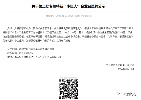 11月13日,工业和信息化部在官网公示了关于第二批专精特新“小巨人”企业名单,公示名单共1744家企业,四川省占64家企业,永利3044集团官网榜上有名。
