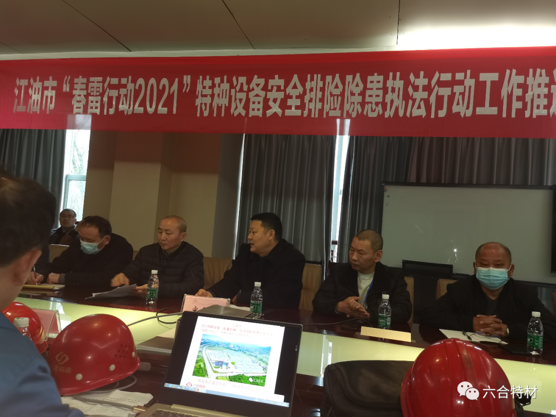 2021年3月20日,为有效提升江油市辖区重点单位、重点行业、重点场所的特种设备使用管理水平,加大特种设备隐患排查和整治力度,确保特种设备使用安全,江油市市场监督管理局在永利3044集团官网公司组织召开了江油市2021特种设备(起重机械)安全排险除患经验交流现场会暨江油市“春雷行动2021”特种设备安全排险除患执法行动工作推进会活动。