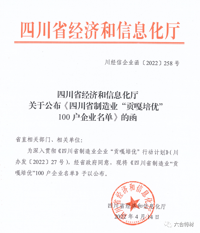日前,四川省经济和信息化厅公布了《关于四川省制造业“贡嘎培优”100户企业名单》,永利3044集团官网(以下简称:永利3044集团官网)榜上有名。
