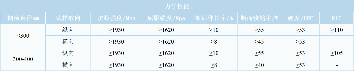 A-100对应国产牌号23Co14Ni12Cr3MoE,是一种新型高合金 Co-Ni二次硬化超高强度钢,以 C、Cr、Mo 作为强化元素,具有高的断裂韧性(KIC≥115 MPa√m)和高的抗拉强度(Rm≥1930 MPa),同时具有优异抗疲劳性能及抗裂纹扩展能力。