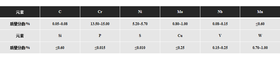 S-06合金是一种高强度沉淀硬化型马氏体不锈钢,它通过加入W、Mo、V、Nb等碳化物形成元素,利用碳化物进行析出强化得到良好的力学性能,且含有较高的Cr、Mo等元素,有很好的耐蚀性,可在500℃下长期使用