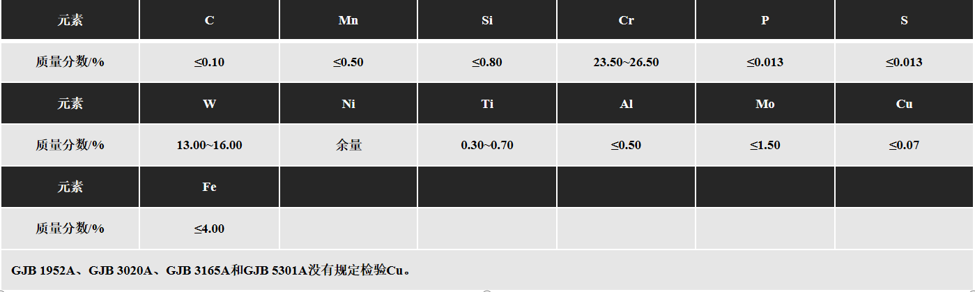 摘自 GB/T 14992,杂质元素分析有区别的摘自 GJB 3317A 和GJB 3318A