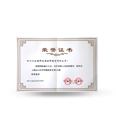 2022年四川制造业百强企业荣誉证书